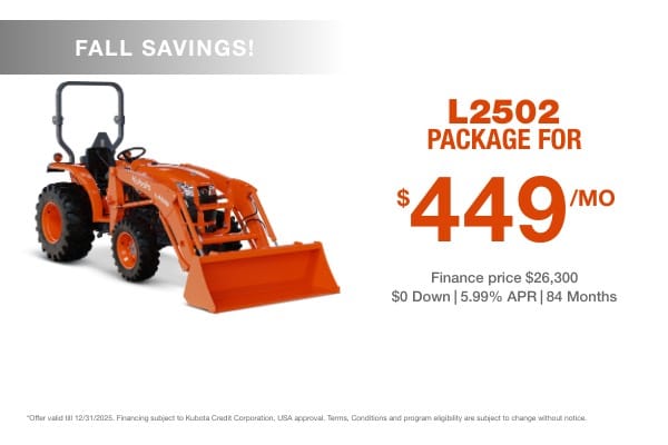 0% APR available or save up to $4,500 on Standard L Tractors!